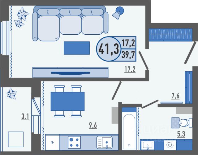 • ✅ Минимальная площадь: 41,3 м²