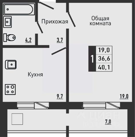 Светлая комната 18,9 кв.м. с выходом на лоджию площадью 3,8, грамотно спланированое пространство. Лоджия утеплена и обшита вагонкой, оборудована шкафом для хранения.