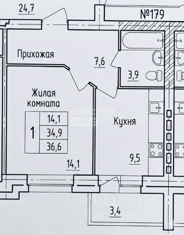 • ✅ Минимальная площадь: 34,8 м²