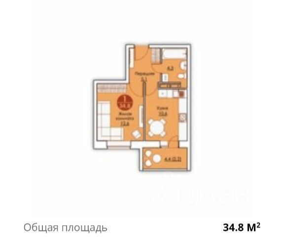 Общая площадь - 37,8 кв.м, жилая - 16 кв.м, кухня- 9,2 кв.м; потолки - 2,75 м; ванная - 3,0 кв.м, туалет - 1,2 кв.м.