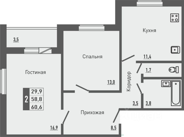 • ✅ Минимальная площадь: 56,4 м²
