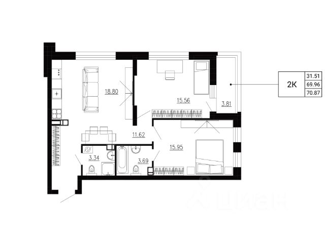 Продаётся 2-комнатная квартира в сданном доме (дом 1), срок сдачи: III-кв. 2024, общей площадью 71.53 кв.м., на 17 этаже. В 2021 году стартовал новый проект от компании "Фортуна" - ЖК "Крылья" на улице Генерала Родина. Он будет состоять из четырех высоток. Строительство первого девятнадцатиэтажного здания уже началось. Комплекс будет отличаться ультрасовременным уровнем благоустройства территории, прилегающей к жилым новостройкам. Согласно проекту воплотится в жизнь концепция "двор без машин". Для жителей высоток будут построены закрытие парковки, в том числе и подземные, дворовая же территория станет безопасным местом для семейного отдыха и занятий спортом. Грамотное зонирование пространства позволит выделить игровые локации, дорожки для прогулок, смотровые площадки с оригинальными лавочками-качелями и видом на озеро. Вся территория будет разделена на два яруса: верхний - в непосредственной близости от высоток, и нижний - возле водоема. Сами новостройки будут оснащены системой "Умный дом", позволяющей управлять домофоном, лифтом, оплатой коммунальных платежей и другими процессами с помощью вашего смартфона. ЖК "Крылья" имеет уникальное расположение в центре города с высокой транспортной доступностью в любую точку Орла. При этом, жилые дома располагаются в зеленой зоне на набережной водоема - озера "Веселое". Прекрасный район с развитой инфраструктурой. В шаговой доступности помимо таких объектов, как Парк Победы и Центральный стадион имени Ленина, находятся: ОГАУ, городской Перинатальный центр, школа 15, детские сады 16 и 85, магазины, парикмахерские.