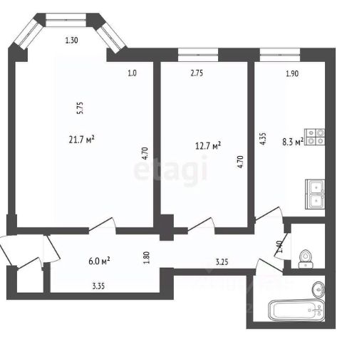 • ✅ Объект наибольшей площади: 57,5 м²