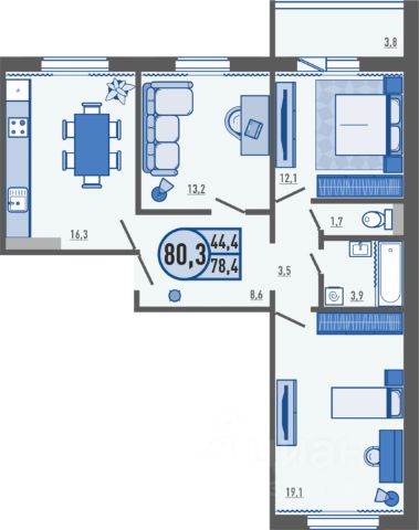 • ✅ Минимальная площадь: 78,3 м²