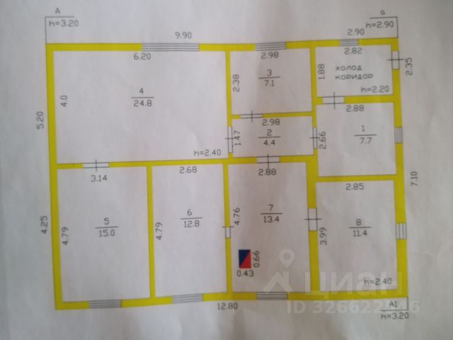 Двухэтажный кирпичный жилой дом, общей площадью 74,2 кв.м. Год постройки 1991. Кровля фальцевая. В доме имеется подвал. Первый этаж: пристроенная к дому деревянная веранда, мастерская (отдельный вход с улицы), большая комната, кухня и совмещенный санузел. Второй этаж: зал, две спальни и балкон.