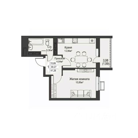 Продается квартира площадью 40.71 кв. м без отделки. Квартира расположена на 2 этаже 17 этажного дома, в жилом комплексе комфорт-класса "Nova парк".