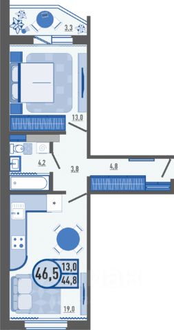• ✅ Минимальная площадь: 33,8 м²