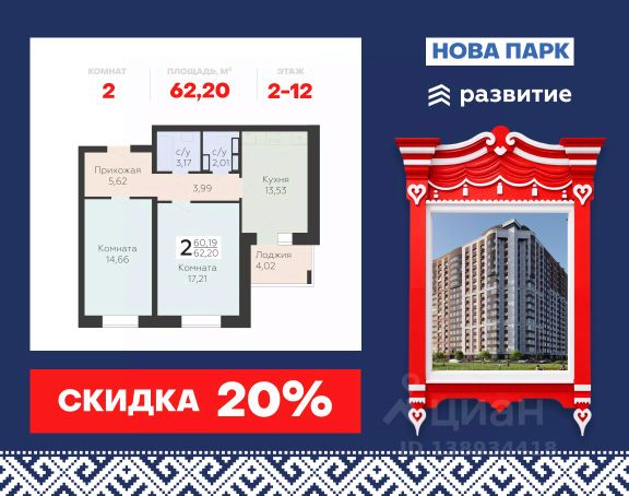 Продается 2-комнатная квартира 62,2 кв.м. на 6 этаже. Жилой комплекс "Нова парк" расположен на берегу реки Орлик с видом на парк Победы, окружен зелеными зонами, что позволит жильцам наслаждаться свежим воздухом и живописным видом. Здесь вам не придется выбирать, где вы хотите жить - на берегу реки, или в историческом центре, "Нова парк" удачно сочетает в себе оба этих преимущества Пoчему "Нова парк" — это удобно: • Спокойный район, жилой комплекс удален от оживленной магистрали. • Собственный паркинг. • Большой благоустроенный двор с детским городком. • Развитая социальная инфраструктура: школы, детские сады, учреждения здравоохранения, магазины. • Крупные торговые сети, маркеты, аптеки в шаговой доступности. • Налажены маршруты общественного транспорта. • Места для досуга и отдыха: речка, лес, пляж, набережная, парк отдыха. Благоустройство прилегающей территории включает в себя организацию зон отдыха, детский городок и спортивные площадки, автостоянка, а также комплексное озеленение. В непосредственной близости расположены образовательные учреждение и магазины. Инфраструктура района: • Большое разнообразие средних образовательных заведений (новые школы), спортшколы и детские садики, поликлиники, фитнес клубы и прочее что необходимо для комфортной жизни в шаговой доступности; • Комфортная социальная среда. Квартиры с возможностью выбора отделки — стандарт, стандарт-плюс и бизнес. Покупая квартиру в ГК Развитие, вы получаете дополнительно БЕСПЛАТНО: - помощь в одобрении и получении ипотеки с минимальной процентной ставкой; - ПОЛНОЕ ЮРИДИЧЕСКОЕ СОПРОВОЖДЕНИЕ от сбора документов до регистрации права собственности; - Консультация и подбор удобного объекта в любое УДОБНОЕ ВРЕМЯ;