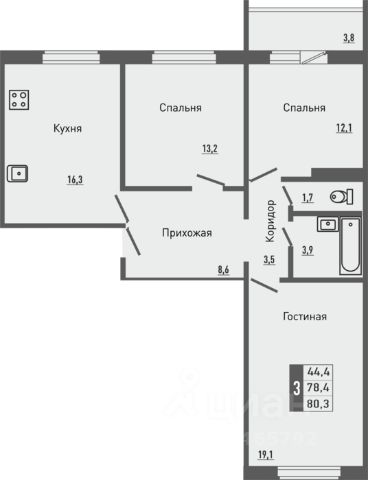 Продается квартира площадью 49.64 кв. м без отделки. Квартира расположена на 3 этаже 17 этажного дома, в жилом комплексе комфорт-класса "Nova парк".