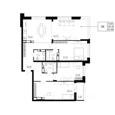 | 🔷 Средняя рыночная цена за м2: | 120,3 тыс. ₽/м²; |