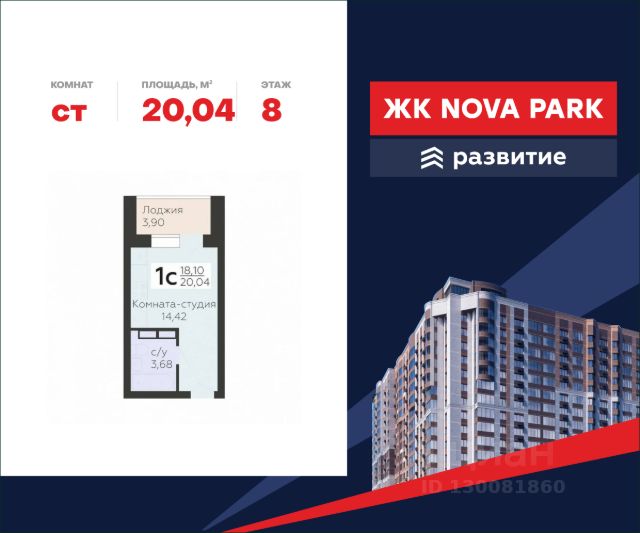 • ✓ В базе Циан 1 квартир-студий на 8 этаже в Орле