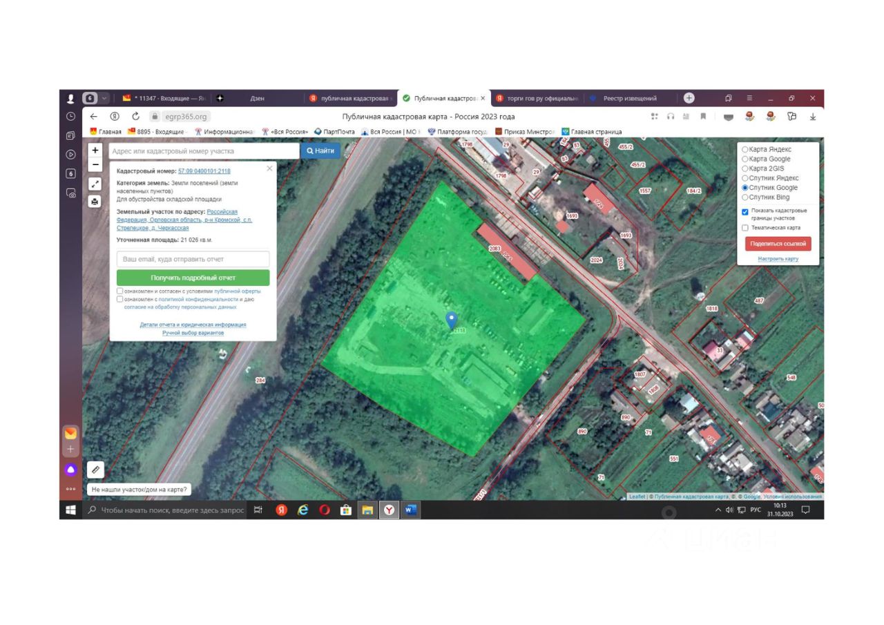 Земельный участок с кадастровым номером 57:09:0400101:2118 площадь 21026 по адресу Российская Федерация, Орловская область, р-н Кромской, с.п. Стрелецкое, д. Черкасская