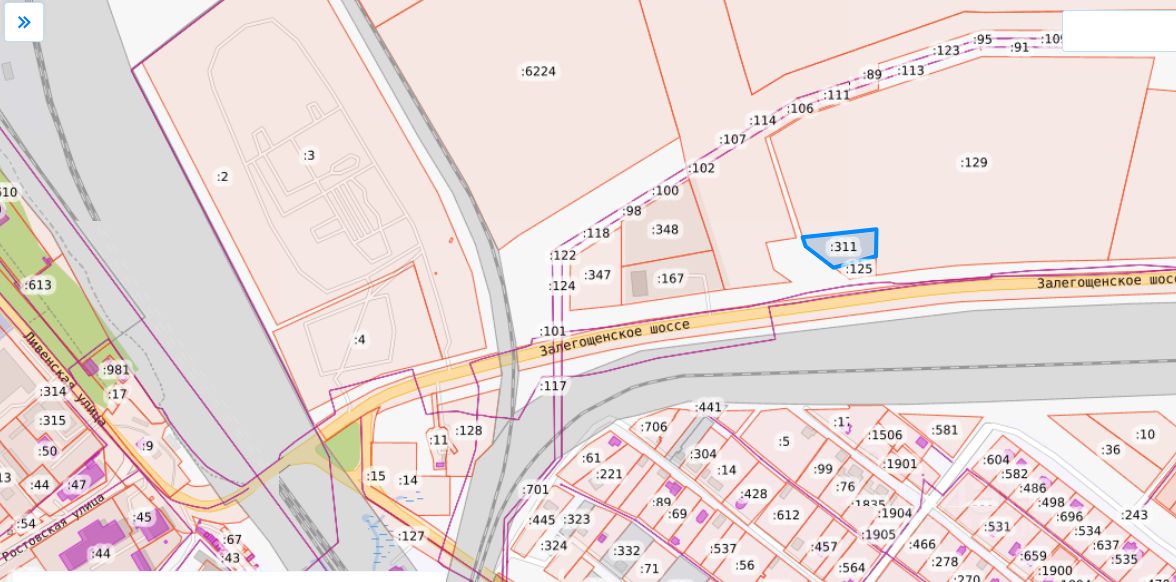 Земельный участок с кадастровым номером 57:25:0031101:311 площадью 3200 кв.м по адресу Российская Федерация, Орловская область, г Орёл, Залегощенское шоссе, 15