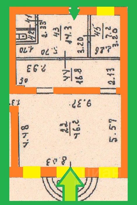 Торговый зал состоит из двух смежных- проходных помещений 46,2 кв.м и 16,8 кв.м общая площадь 63 кв.м