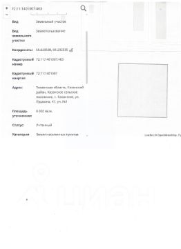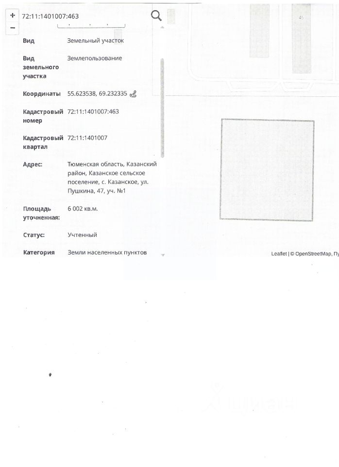 Тюменская область, Казанский район, Казанское сельское поселение, с. Казанское, ул. Пушкина, 47, уч. 1