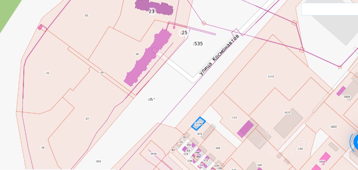 Земельный участок с кадастровым номером 57:25:0040301:1176 площадь 244 кв.м по адресу Российская Федерация, Орловская область, г Орёл, Северный район, ул.Космонавтов, участок 34