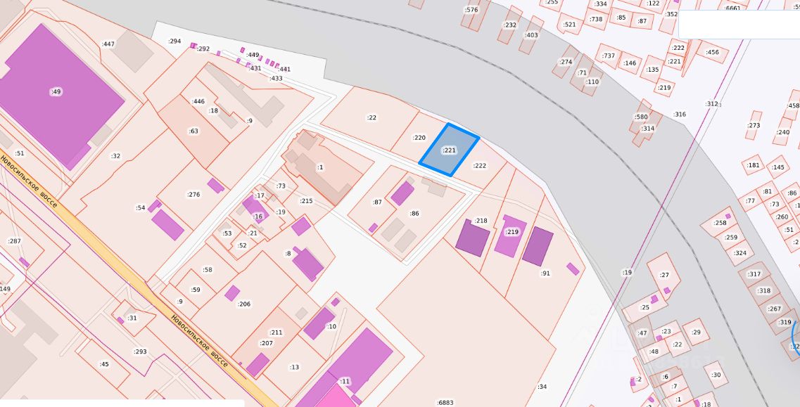 Земельный участок с кадастровым номером 57:25:0031120:221 площадью 2959 кв.м по адресу Российская Федерация, Орловская область, г Орёл, ш Новосильское
