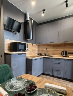 Кухня оборудована современным гарнитурам