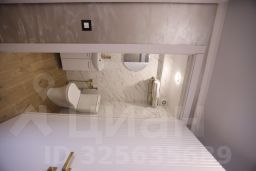 Совмещенный санузел с душевой кабинкой, фен, гигиенические средства, косметические средства,