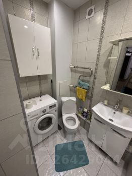 В ванной комнате установлена стиральная машина и совмещенный санузел.