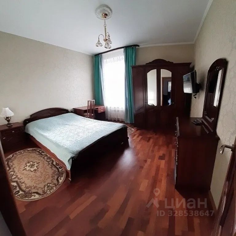 Номер состоит из двух спальных комнат, гостиной, прихожей и ванной комнаты. В спальных комнатах двуспальные кровати , прикроватные тумбы, комод, шкаф для одежды.