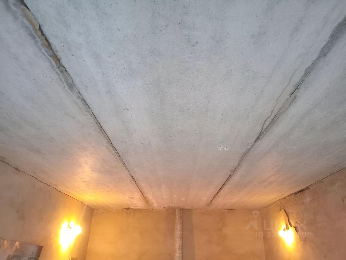 Потолок перекрыт железобетонными плитами, не протекает. Подвал просторный, сухой. Пол деревянный, требует ремонта.