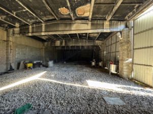 - склад-гараж на 4 бокса — 400 м2 (стены — бетонные блоки, пол — щебенка);