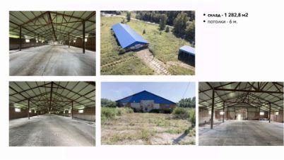 - склад 1 282,8 м2 (единый зал без колонн, пол — бетон);