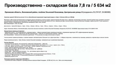 Прямая продажа от собственника — участок с пром базой (складские, производственные и административные площади) рядом с г. Орел / г. Болхов.