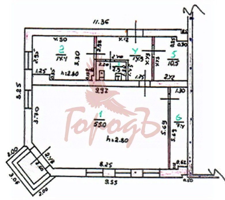 Торговый зал-55 кв. м., кабинет-14,4 кв. м., склад-10,5 кв. м., кладовая-7,4 кв. м., коридор-14,9 кв. м.
