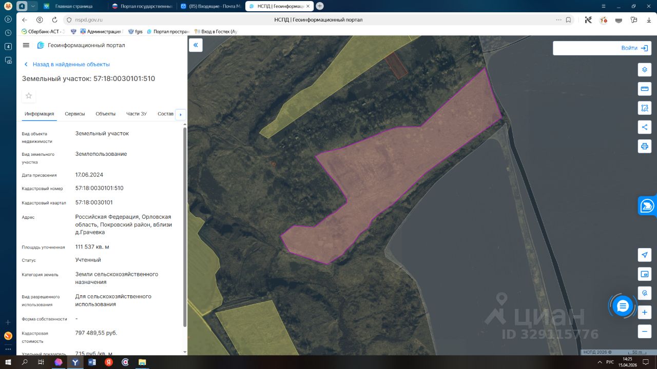 земельный участок, кадастровый номер 57:18:0030101:510, площадью 111537 кв. м., категория земли сельскохозяйственного назначения, вид разрешенного использования для сельскохозяйственного использования, местоположение: Российская Федерация, Орловская область, Покровский район, вблизи д. Грачевка