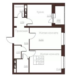 2-комн. квартира, 69,31 м²