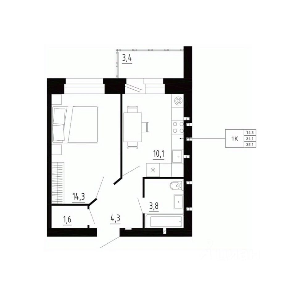 Общая площадь35,1 м²