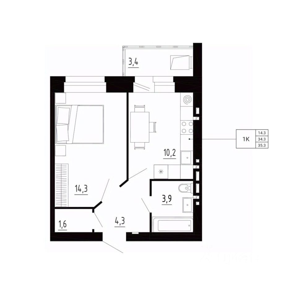 Общая площадь35,3 м²