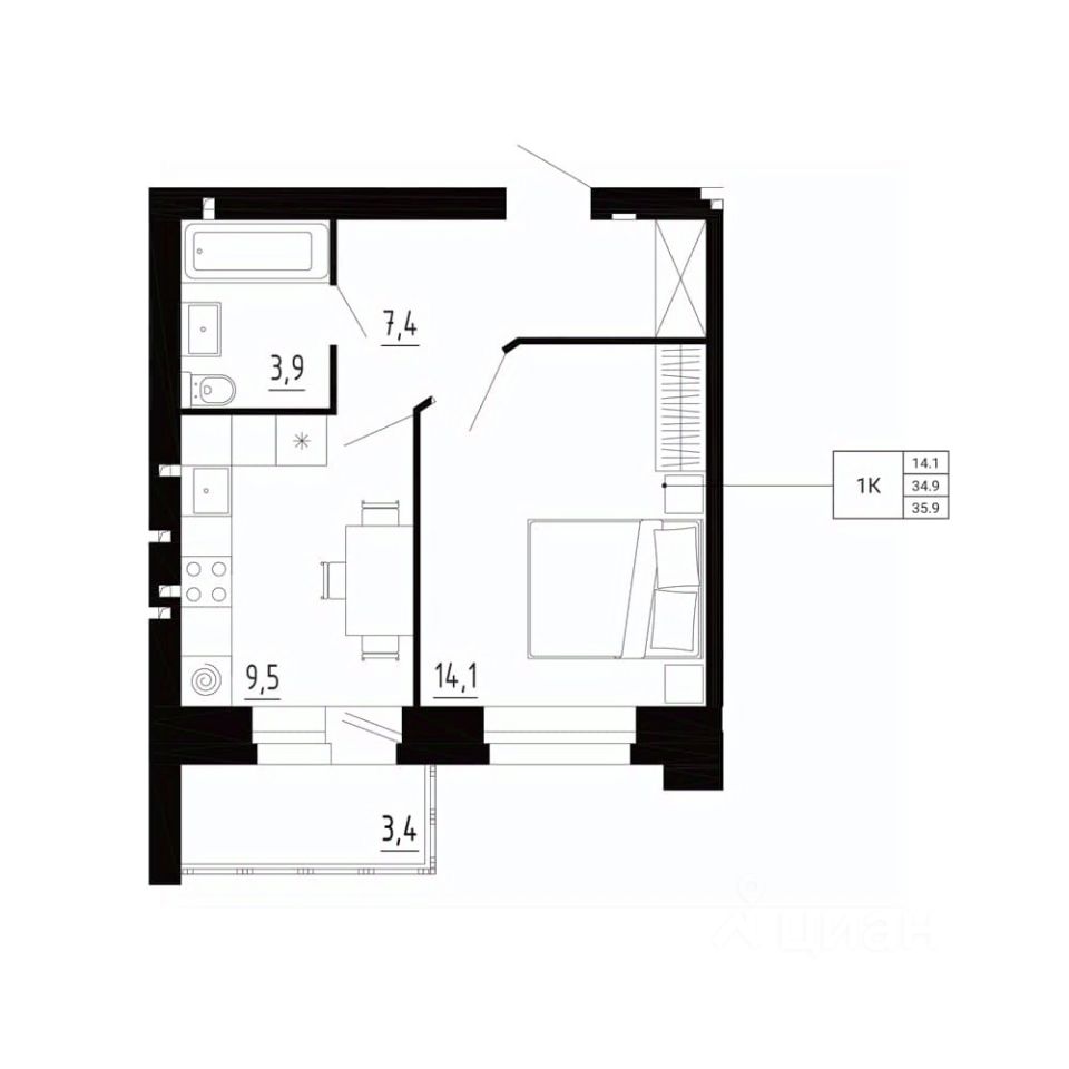 Общая площадь35,9 м²