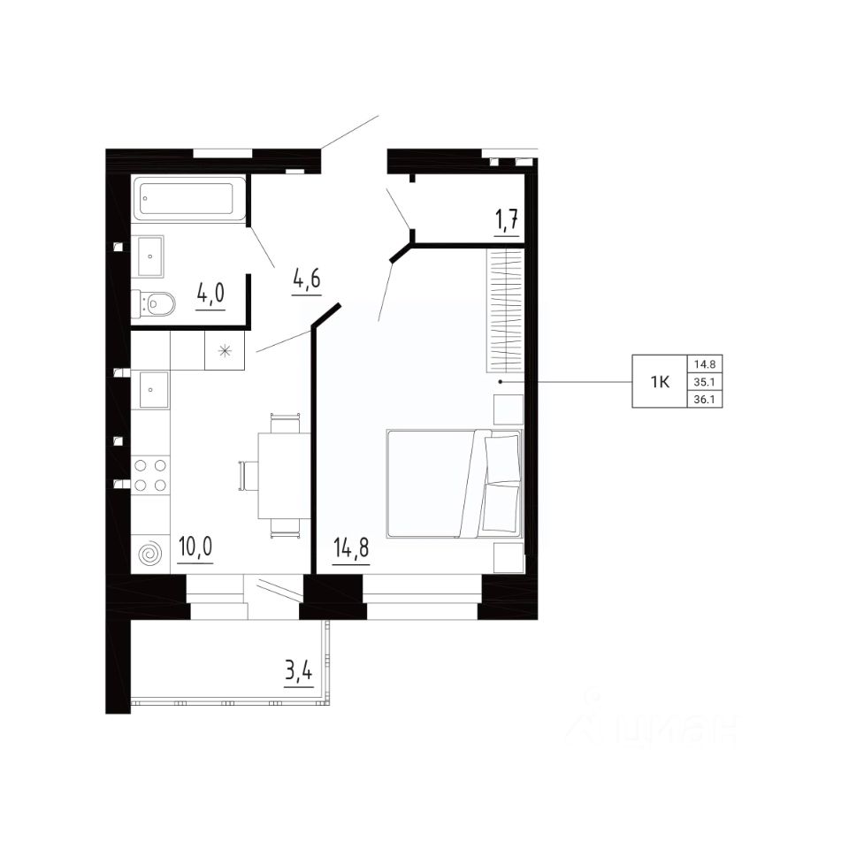 Общая площадь35,9 м²