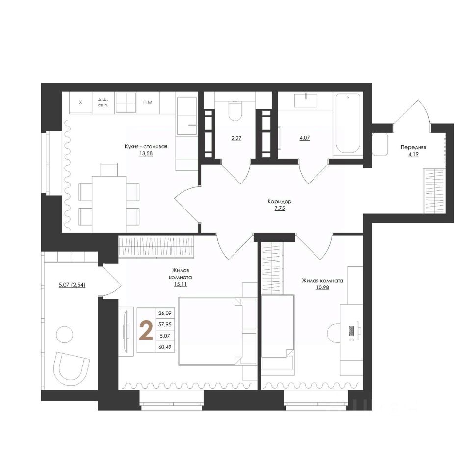 Уютная двухкомнатная квартира в ЖК "Лидер" с отделкой. Спроектирована с учетом самых современных технологий и требований к комфорту. Просторные планировки, высококачественные материалы, панорамные окна, большие балконы и виды на живописные окрестности — все это создает атмосферу уютного и благополучного жилья