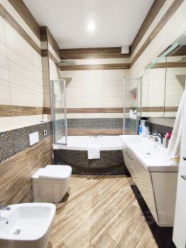 Два санузла (совмещенный и раздельный), облицованные итальянской керамической плиткой, добавляют удобства.