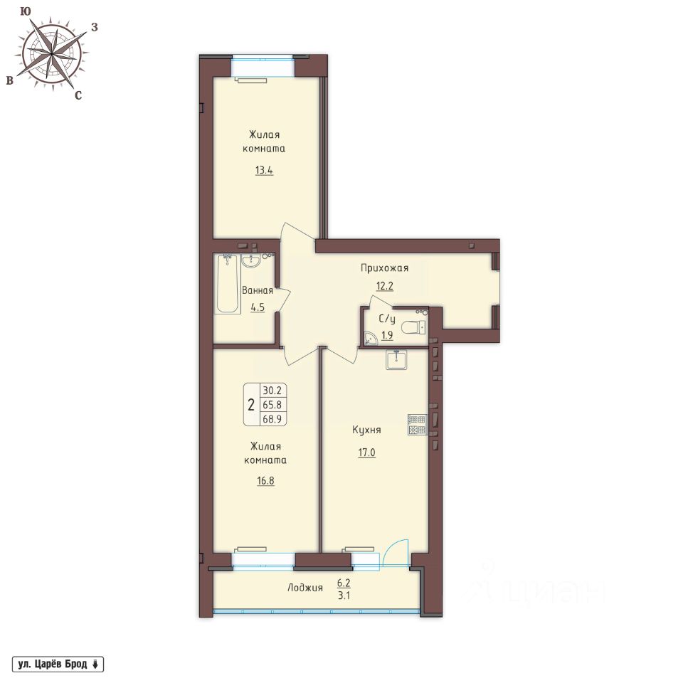 Продаётся 2-комнатная квартира в сданном доме (Царев Брод, 33А (дом 1)), срок сдачи: I-кв. 2025, общей площадью 68.9 кв.м., на 6 этаже. Новый жилой комплекс "Новое Заречье" от застройщика "Зенит" расположен по адресу Орловская область, Орловский район, посёлок Зареченский, Престижная улица.
