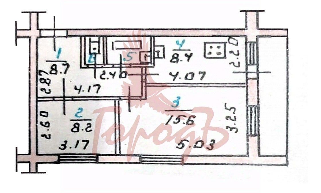 Общая площадь квартиры 44 кв. м., жилая-23,8 кв. м., кухня-8,4 кв. м.