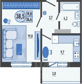 38,7 м²