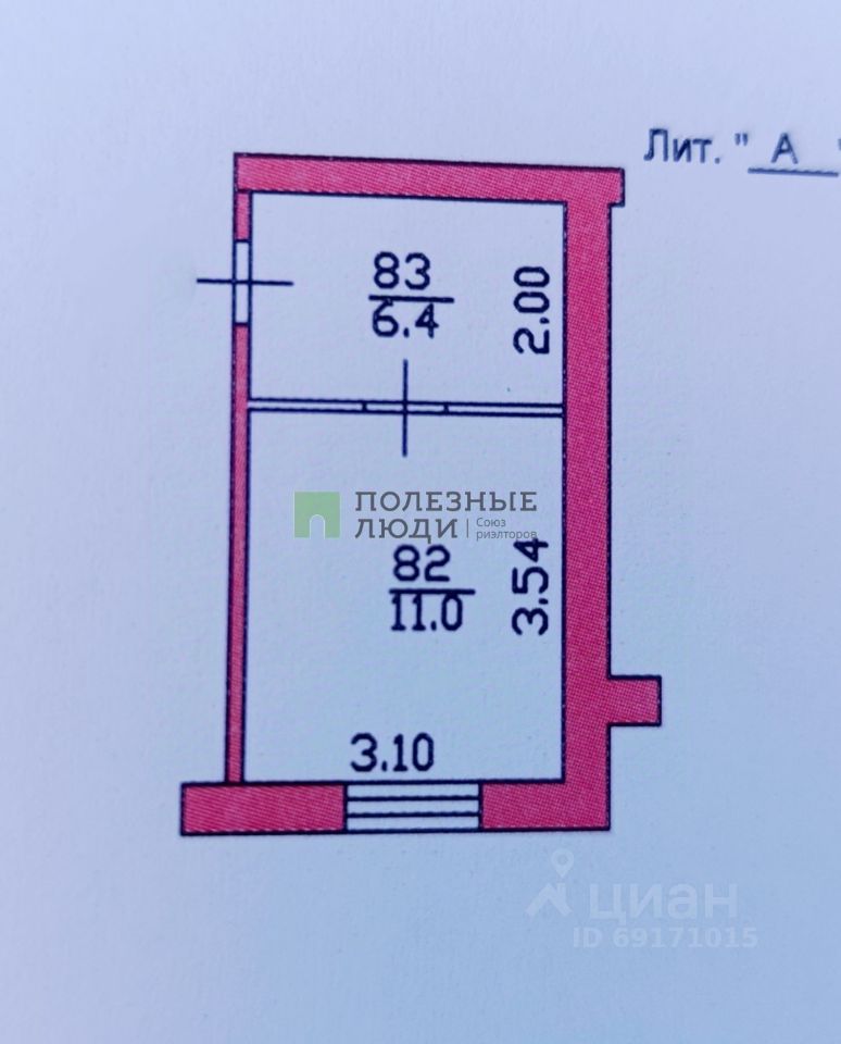 Площадь комнаты 17.40 кв. м