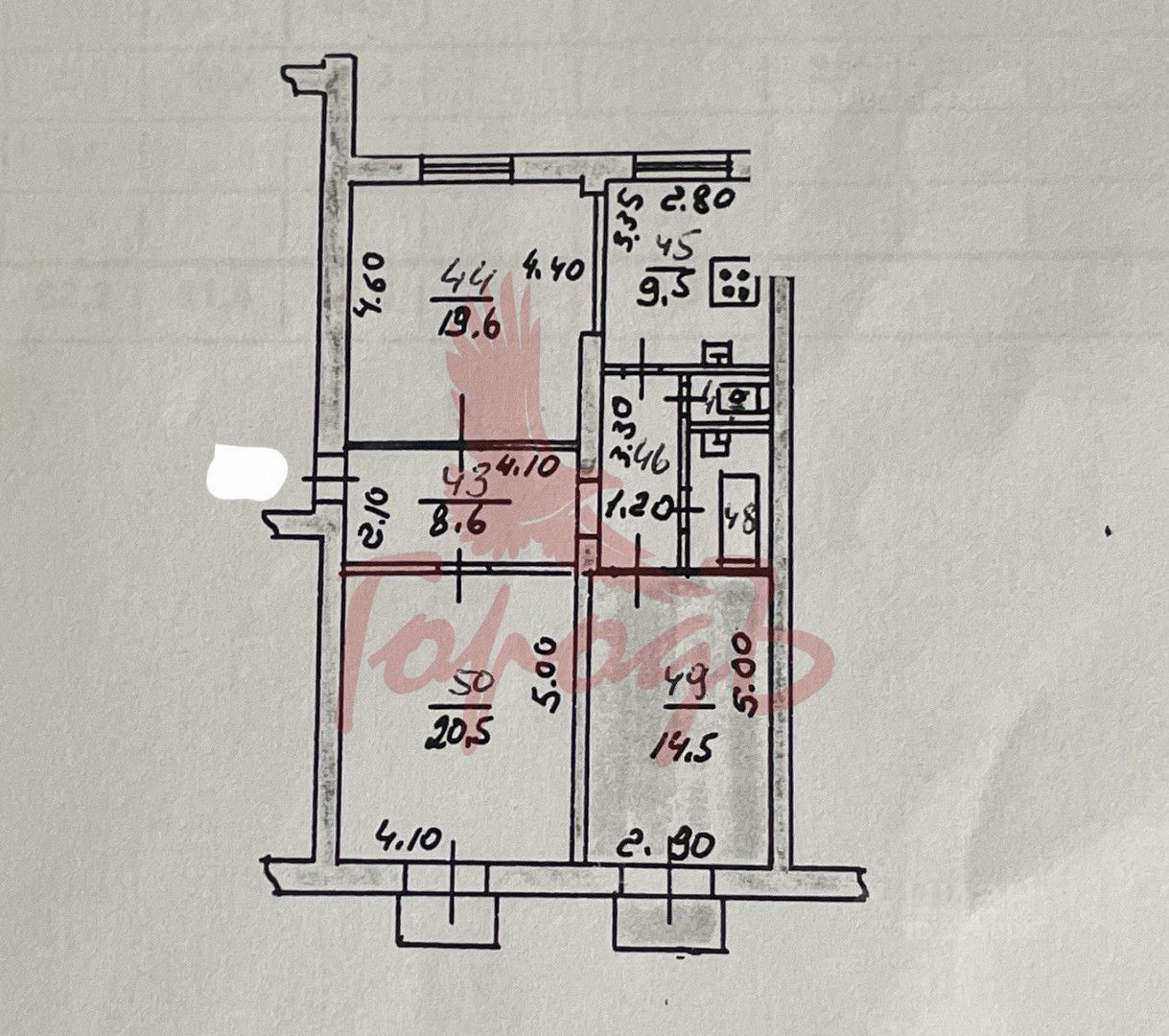 Квартира общей площадью 81,4 м2 + 2 французских балкона. Потолки 3 метра, комнаты изолированы, частично сделан ремонт. Окна ПВХ, натяжные потолки, напольное покрытие линолеум. Кухня 9,5 м2, жилые комнаты: 20,5 м2, 19,6 м2 и 14,5 м2. Санузел раздельный, ванная комната 3,5 м2. Остается мебель и техника.
