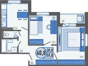 61,1 м²