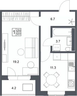 43 м²