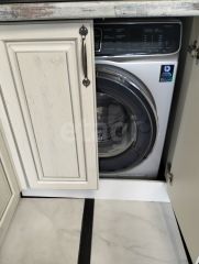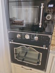 В кухне-гостиной установлен встроенный гарнитур с посудомоечной машиной, встроенный духовой шкаф, микроволновая печь марки Electrolux.