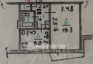 Общая площадь квартиры -37,9кв. м., кухня-9 кв.м, жилая комната-19,3 кв.м., кладовая-1,3 кв.м.