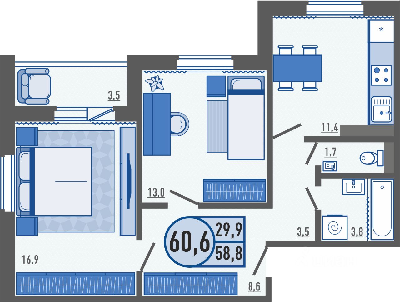 Продаётся 2-комнатная квартира в сданном доме (Раздольная, 11А), срок сдачи: III-кв. 2025, общей площадью 60.7 кв.м., на 6 этаже. ЖК "Горизонт" - современный жилой комплекс, в котором каждый сможет выбрать свой сценарий для жизни и отдыха, основываясь на стремлениях и мечтах.