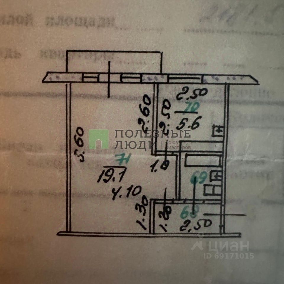 Общая площадь квартиры-30.6 м², жилая-19.1 м², кухня-5.6 м².Просторная, светлая, не угловая, сделан косметический ремонт, совмещенный санузел, колонка автомат, в квартире тепло зимой, летом достаточно комфортная температура.