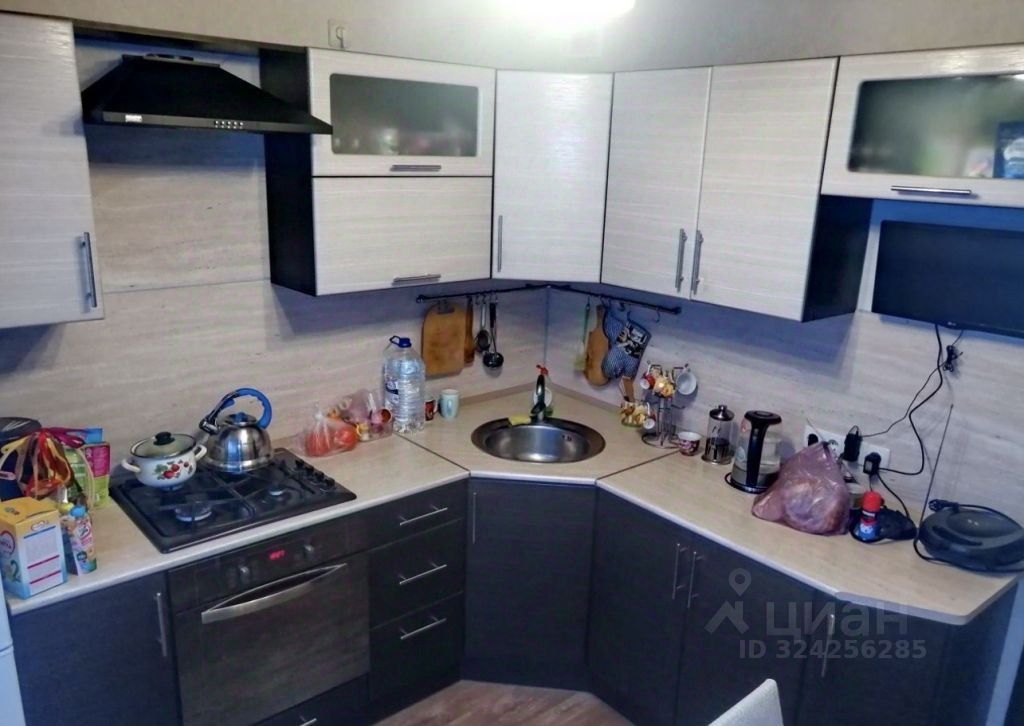 Кухня удобной квадратной формы, с встроенной кухней, шкафчики с доводчиками, были установлены новые трубы под раковину.